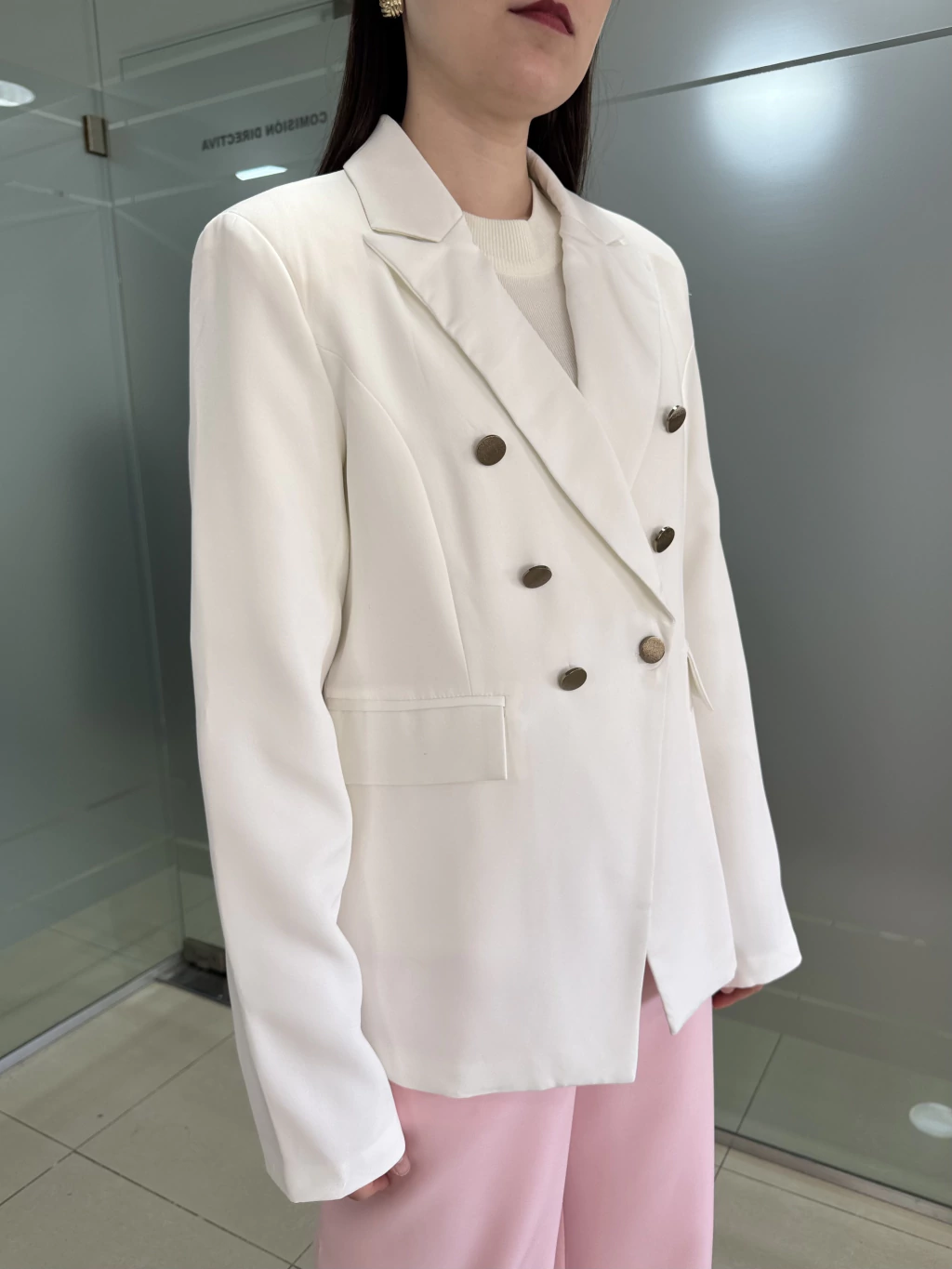 Blazer importado forrado con hombreras internas. Tiene botones metalizados y bolsillos reales. Es entallado en la cintura. Un modelo super delicado, basico para la oficina y de calidad premium.